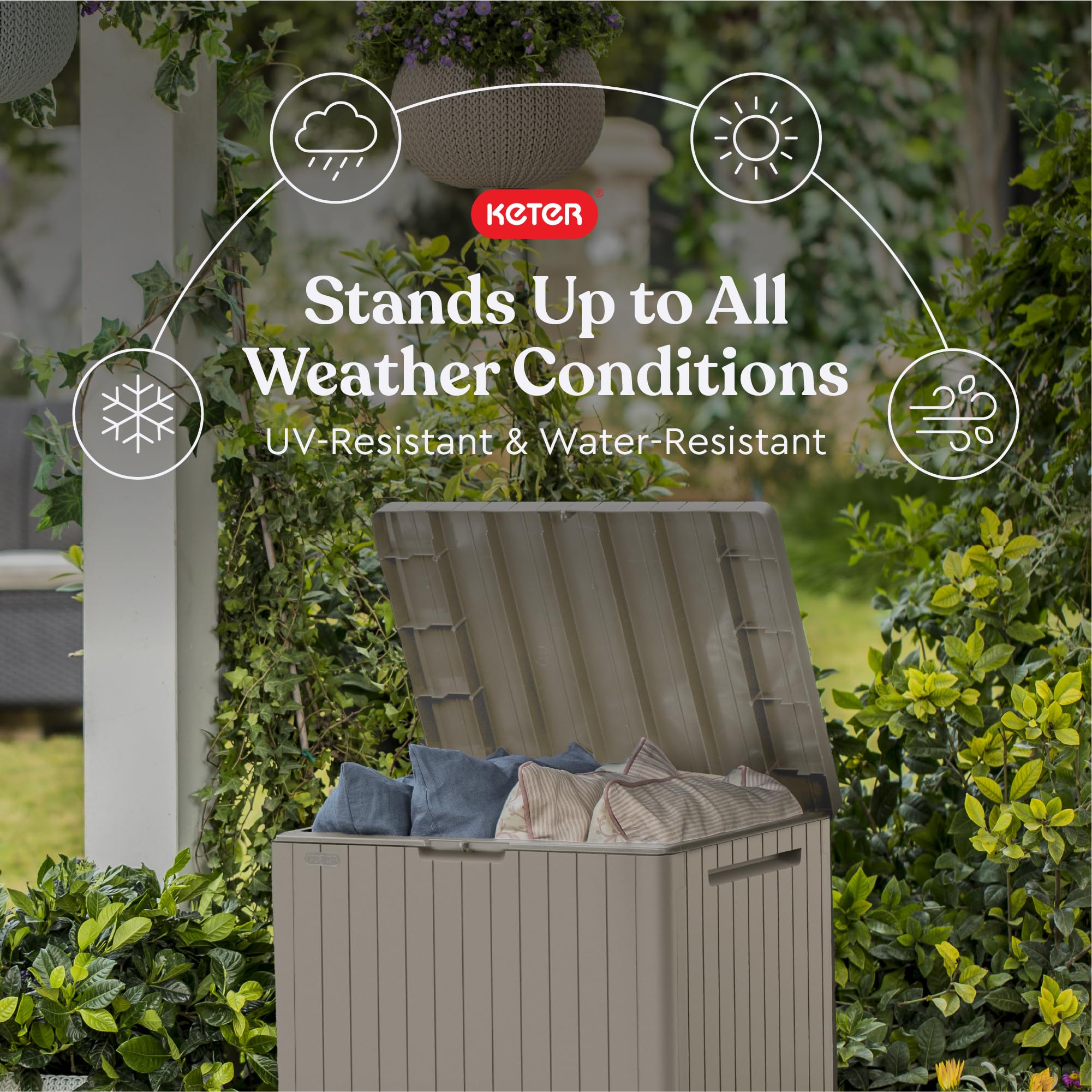 - 30‑GALLON STORAGE CAPACITY: Ideal small‑format deck box offering 30 gallons of storage, perfect for cushions, garden tools, pool essentials, bird seed, and more.