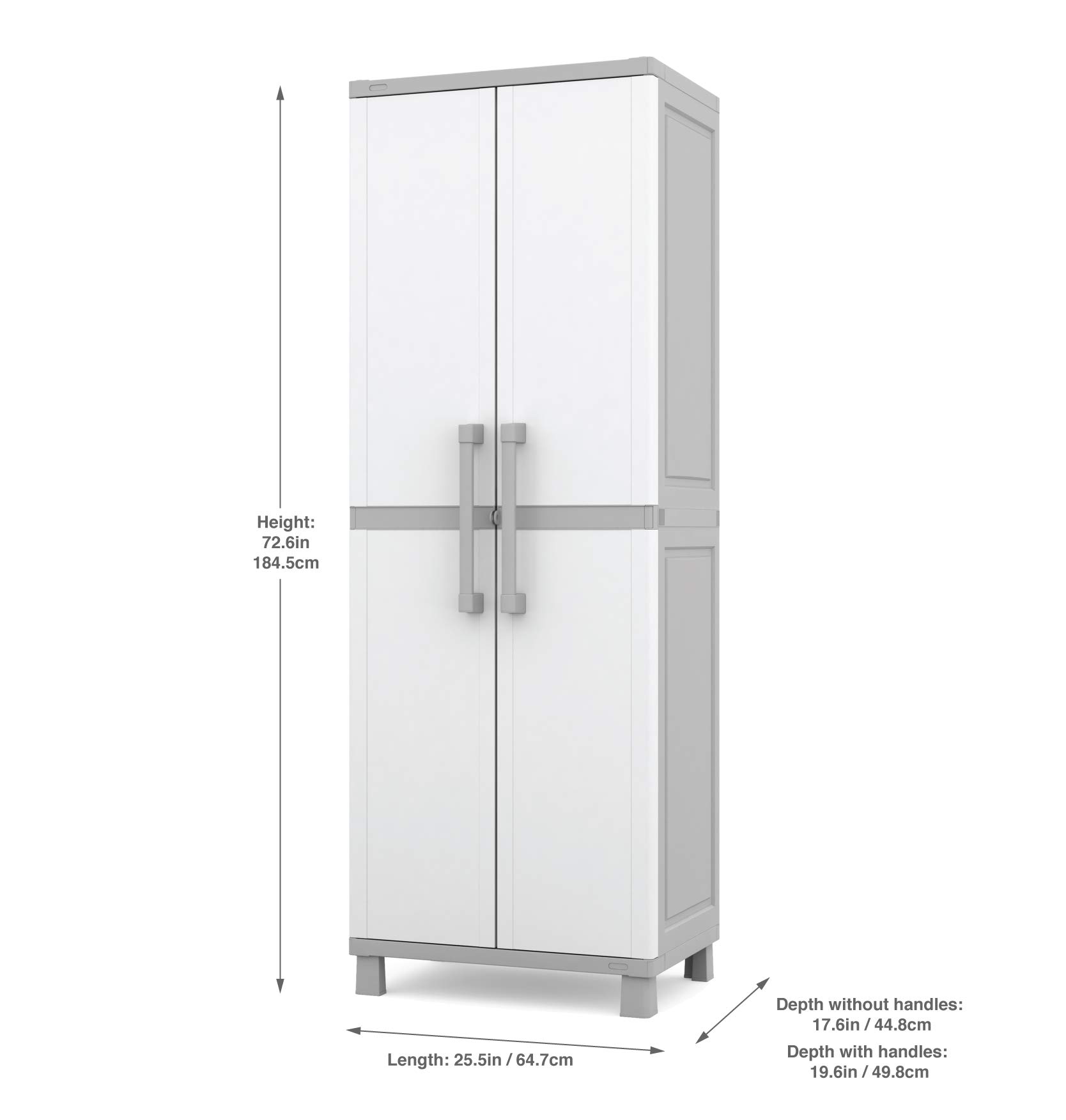 Keter Storage Cabinet with Doors and Shelves for Laundry Room, Garage, Bathroom Accessories, Closet and Home Organization, White & Grey—